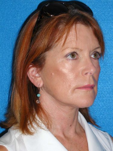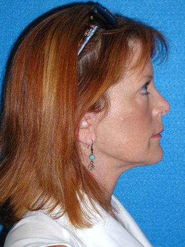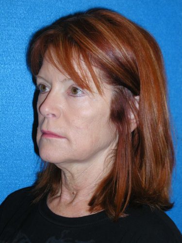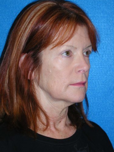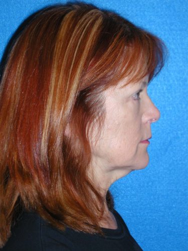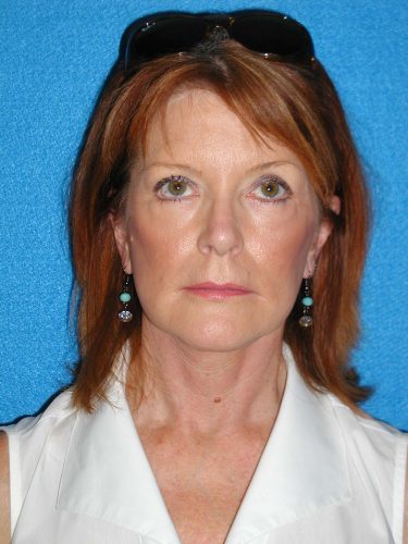 The patient is a 60-year-old female who wanted to get rid of excess skin in her neck and improve the excess jowling. She underwent a rhytidectomy, SMAS, platysmaplasty procedure. At a later time she underwent fat grafting to her cheeks, nasolabial folds, under cheek, and lid/cheek junction area.