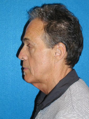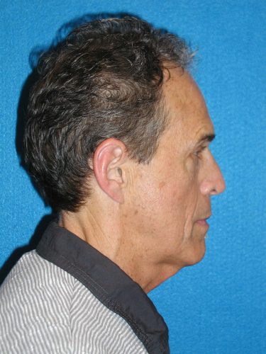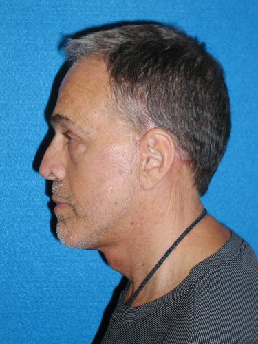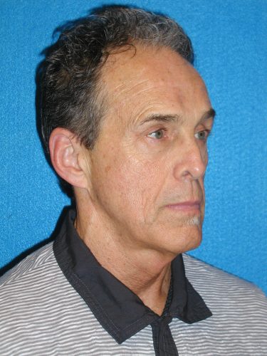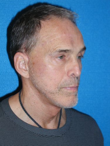 The patient is a 60-year-old male who has elected to proceed with facial rejuvenation surgery to improve the excess skin sag in neck and around his eyes. He has undergone facial rejuvenation surgery with rhytidectomy, SMAS, platysmaplasty with fat grafting to the periorbital area, glabellar area, mid-cheek, and nasolabial fold areas.