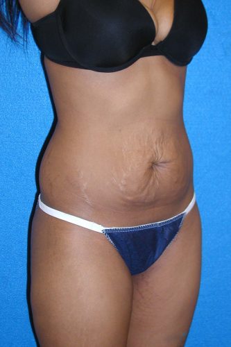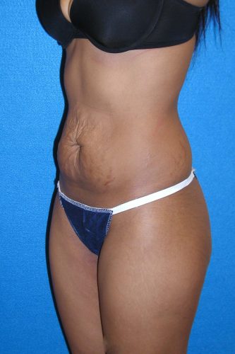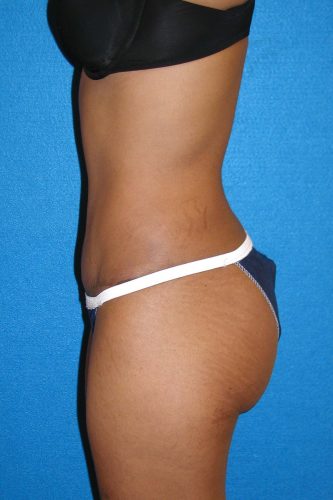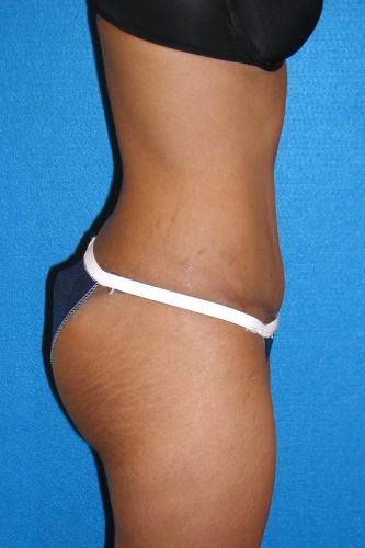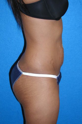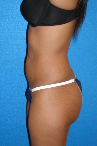 The patient is a 34-year-old female wanting to get rid of stretch marks and extra fatty tissue around her waist. She elected to undergo abdominoplasty with liposuction to her flanks and lateral and upper abdomen with a total of 650 cc removed.