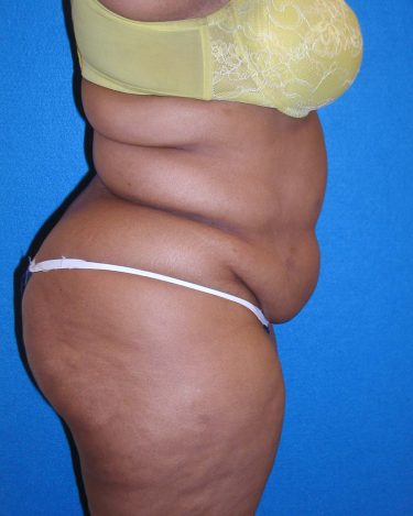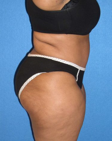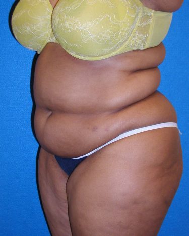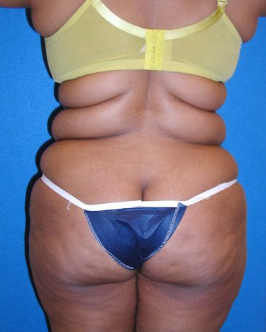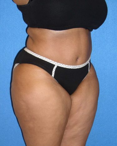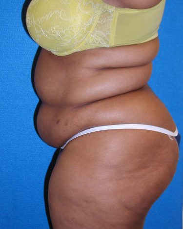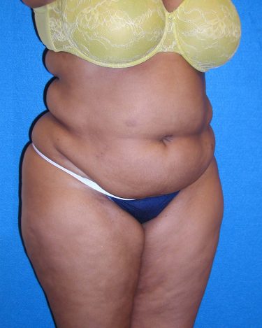 The patient is a 45-year-old female wanting to get rid of excess fatty tissue in her back, flanks, and abdomen. She elected to undergo abdominoplasty with liposuction to her flanks and upper and lateral abdominal area.