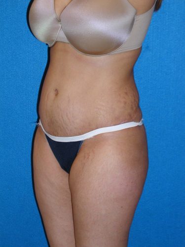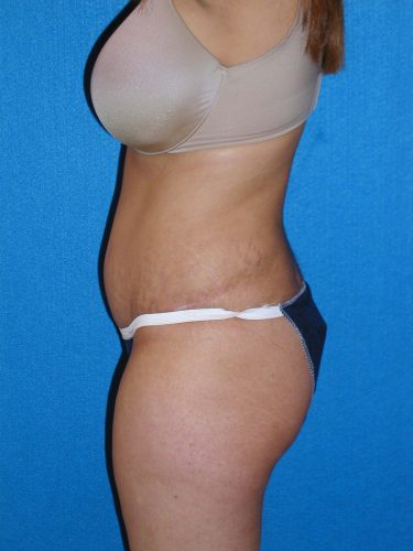 The patient is a 34-year-old wanting to improve the aesthetic of her abdominal area with a tummy tuck and liposuction. She underwent an abdominoplasty procedure with liposuction to her upper lateral abdomen and flank areas where a total of 1600 cc of aspirate was obtained.