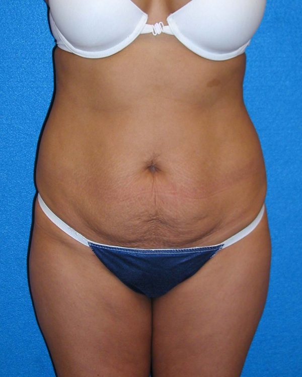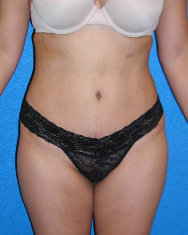 The patient is a 40-year-old female wanting to correct rectus diastasis and remove excess skin and fatty tissue. Abdominoplasty was performed and 1275 cc of liposuction aspirate was removed from the flanks and lateral and upper abdomen.