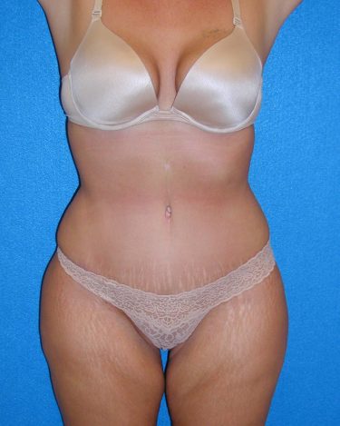 The patient is a 36-year-old female who had significant rectus diastasis and skin wrinkling with excess skin and fatty tissue around her abdomen. She underwent an abdominoplasty with a total of 3000 cc of liposuction aspirate removed from the lateral thighs, upper and lateral abdomen, and flanks.