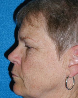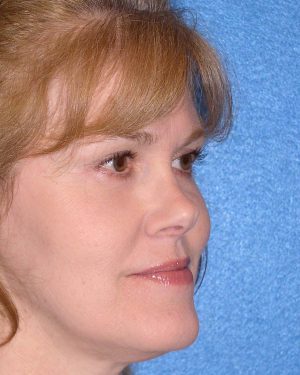 This attractive female patient desired treatment of the periorbital area for improvement of heavy, low set eyebrows. She felt they made her look stern or angry. She had an endoscopic Brow lift with very nice improvement.