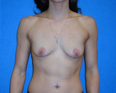 The patient is a 28-year-old wanting to undergo breast enhancement surgery. Given the slight ptosis of her breasts a donut mastopexy, vertical mastopexy, and straight augmentation were discussed. The patient elected to proceed with bilateral breast augmentation with 320 cc smooth round ultra-high profile implants placed submuscularly with an inframammary fold incision.