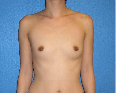 The patient is a 31-year-old wanting breast enhancement surgery. 285 cc saline implants were placed bilaterally and filled to 300 cc on the right and 280 cc on the left. Both implants were placed under the pectoralis muscle with an inframammary fold incision.