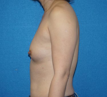 The patient is a 35-year-old wanting breast enhancement surgery. Bilateral 330 cc high profile saline implants were placed under the pectoralis muscle with an inframammary fold incision. Both implants were filled to 360 cc.