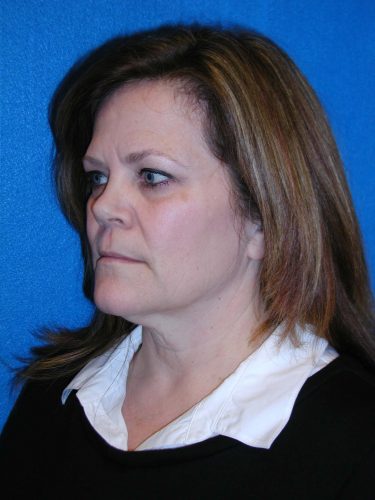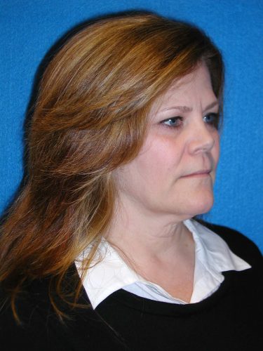 The patient is a 58-year-old female who has elected to undergo facial rejuvenation surgery to improve the signs of aging in her face. She underwent rhytidectomy, SMAS, platysmaplasty, endoscopic browlift, and fat grafting to her marionette lines and perioral area.