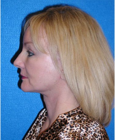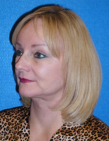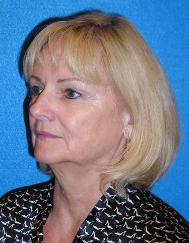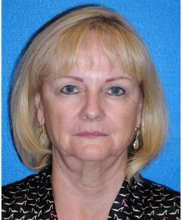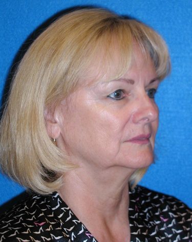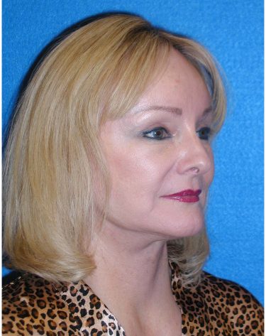 The patient is a 59-year-old female who has undergone facial rejuvenation surgery. A rhytidectomy, SMAS, platysmaplasty, endoscopic browlift, and upper blepharoplasty were performed. She also underwent CO2 laser around her mouth and fat grafting to her nasolabial folds, marionette lines, chin, and perioral area.