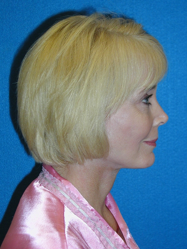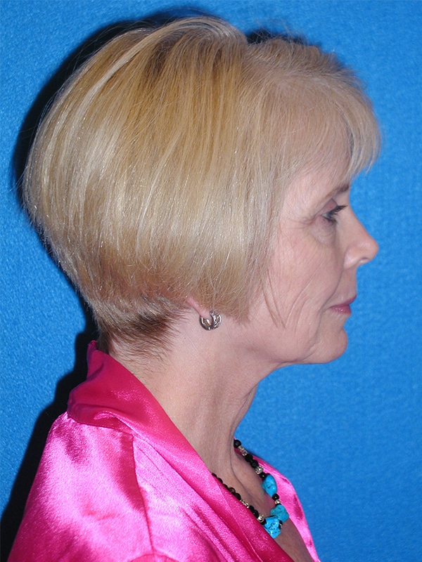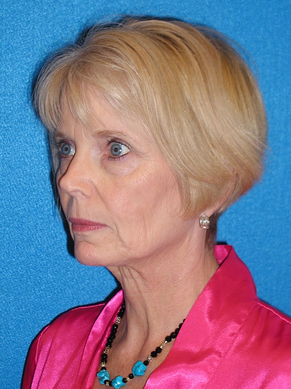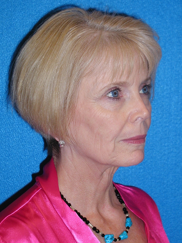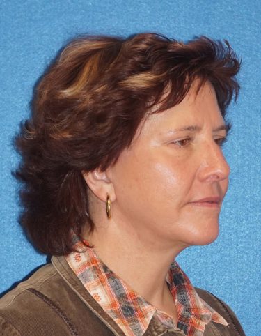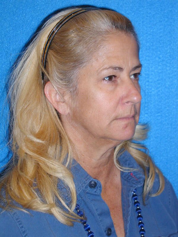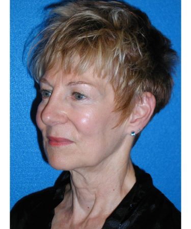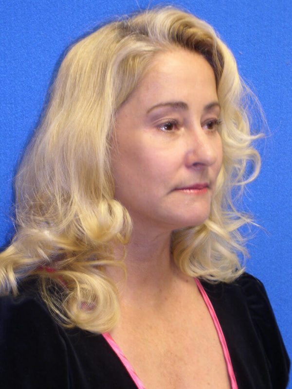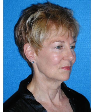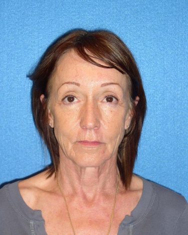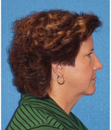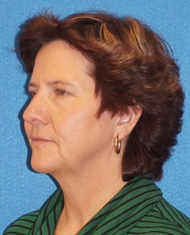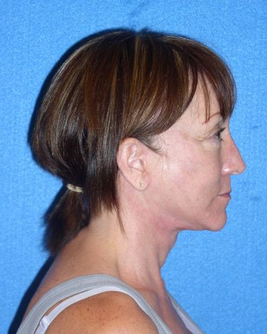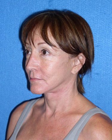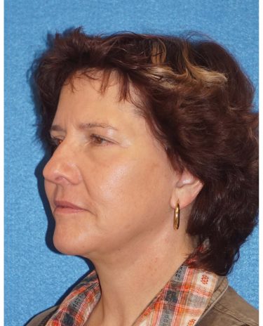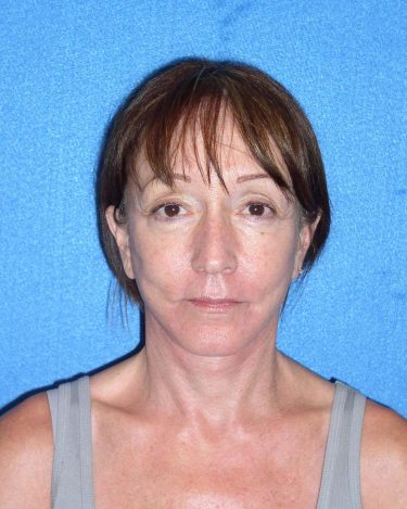 The patient is a 55-year-old female who underwent facial rejuvenation surgery to remove excess skin in her neck and upper eyelid areas and decrease jowling and the appearance of aging. A rhytidectomy, SMAS, platysmaplasty was performed with upper lid blepharoplasty. She also received fat grafting to the marionette lines, suborbital and malar area, and upper face.