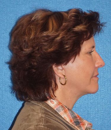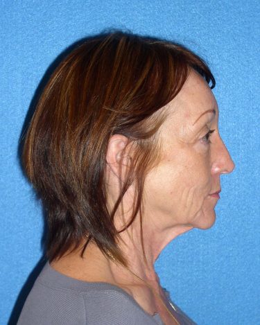 The patient is a 56-year-old who has undergone a facial rejuvenation procedure in the past, but was noticing increasing sagginess in her neck and cheek area. She elected to proceed with an additional rejuvenation procedure including rhytidectomy, SMAS, platysmaplasty, mid-facelift, canthoplasty, and fat grafting to her nasolabial folds, temporal areas, lips, and around her eyes.