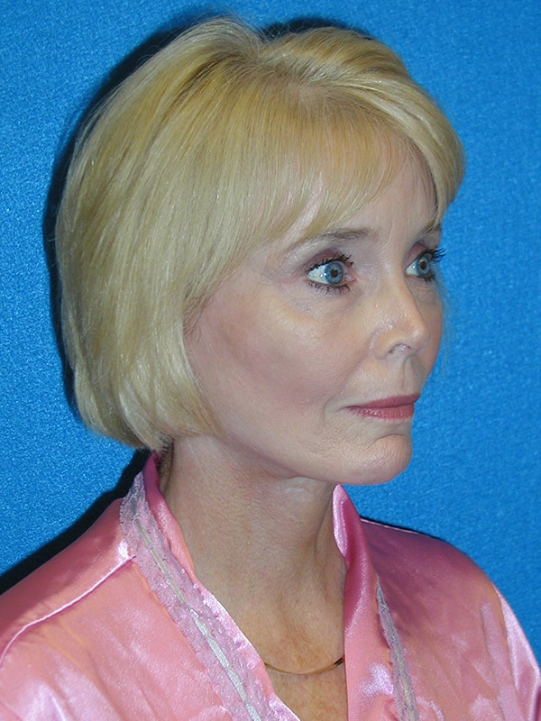 The patient is a 60-year-old who underwent facial rejuvenation surgery which included a rhytidectomy, SMAS, platysmaplasty with fat grafting to her nasolabial folds and malar areas.