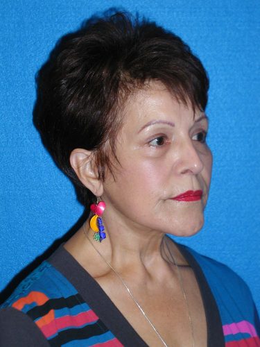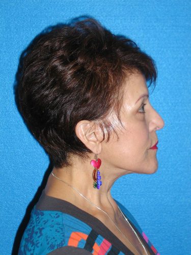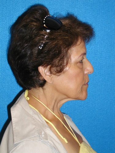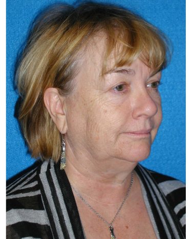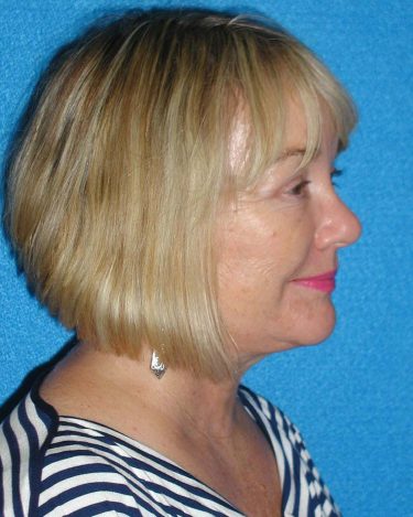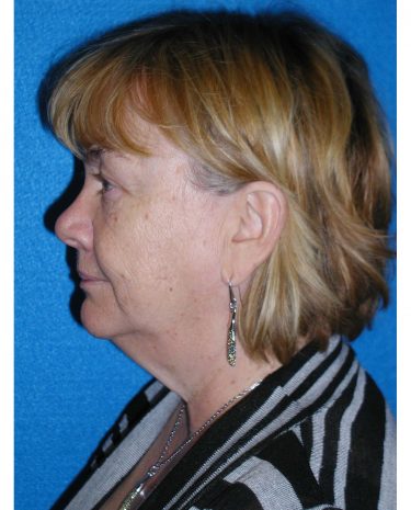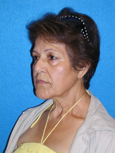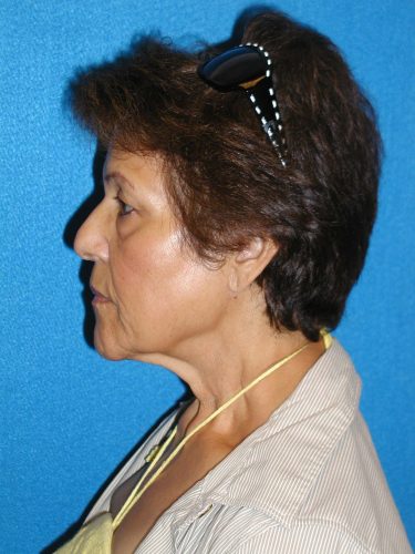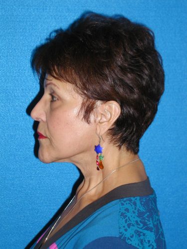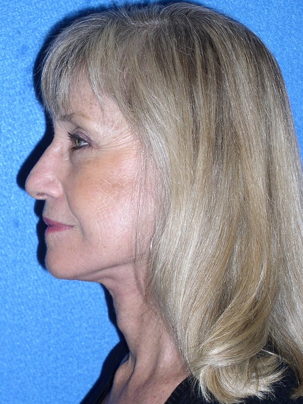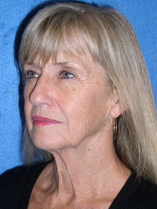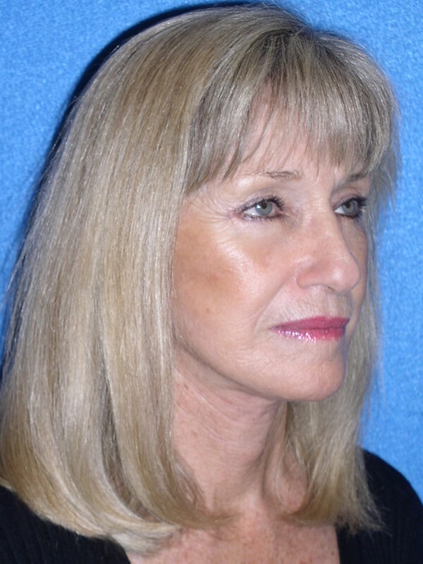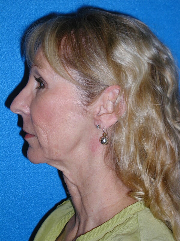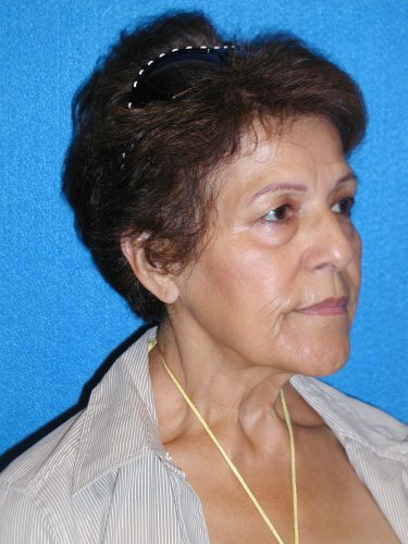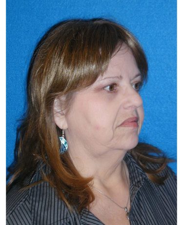 The patient is a 63-year-old female who wanted to improve the drooping and excess skin in her neck and face. She elected to undergo facial rejuvenation surgery which included a rhytidectomy, SMAS, platysmaplasty, corrugator resection through an endoscopic browlift, mid-facelift, and upper and lower lid blepharoplasty.