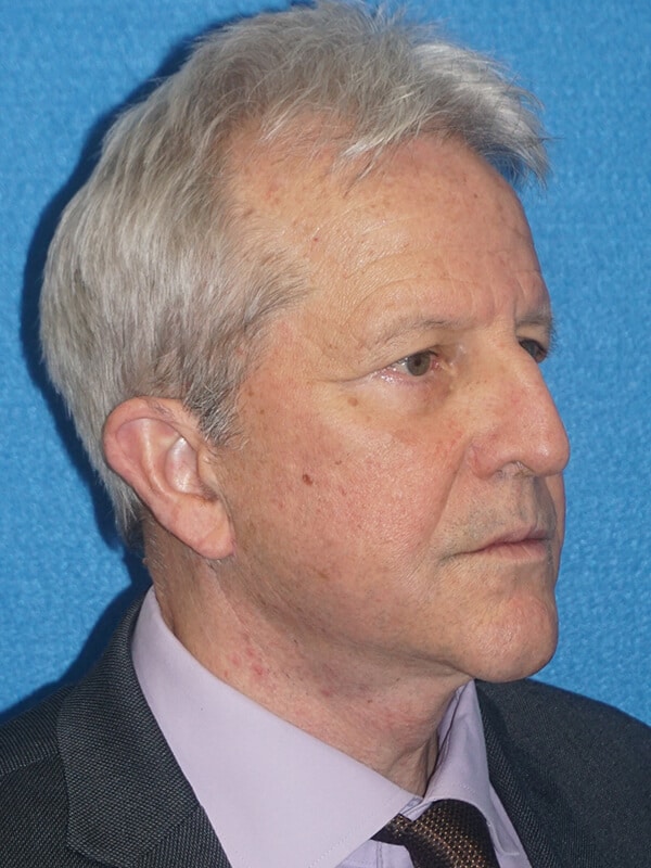 The patient is a 65-year-old male wanting to undergo procedures to decrease the amount of skin and hang around his neck and excess skin around his eyes. He elected to proceed with a rhytidectomy, SMAS, platysmaplasty, lower lid blepharoplasty, and fat grafting to the upper mid-face, cheek area, nasolabial folds, perioral, and periorbital areas.