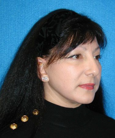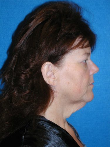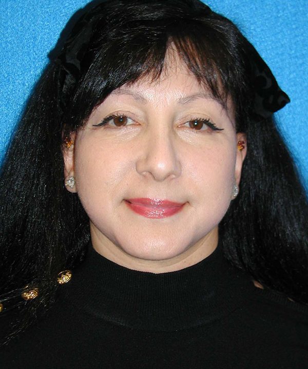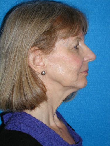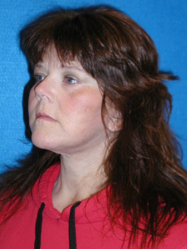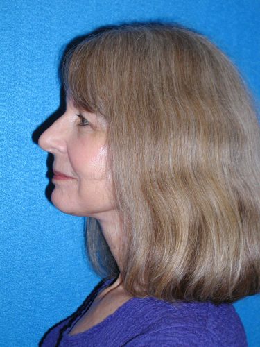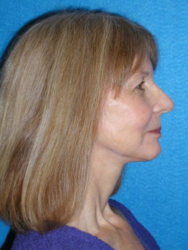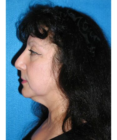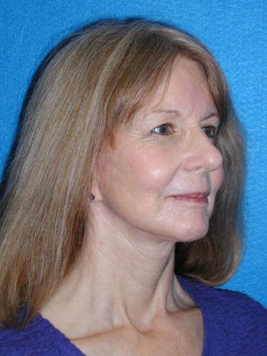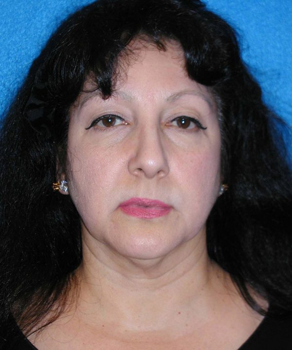 The patient is a 54-year-old female who has undergone facial rejuvenation surgery which included a rhytidectomy, SMAS, platysmaplasty, and mid-facelift with upper and lower lid blepharoplasty and fat grafting to the nasolabial folds, upper cheeks, and lid/cheek junction. She also underwent a rhinoplasty procedure at a later time to straighten the dorsum and refine the tip of her nose.