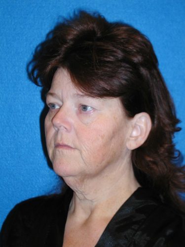 The patient is a 55-year-old with complaints of jowling, neck droop, and brow droop with excess skin. She underwent facial rejuvenation surgery which included upper and lower blepharoplasty, anterior hairline browlift, rhytidectomy, SMAS, platysmaplasty with fat grafting to the upper and lower lips.