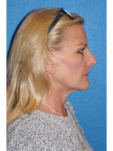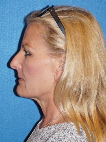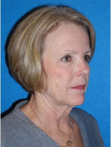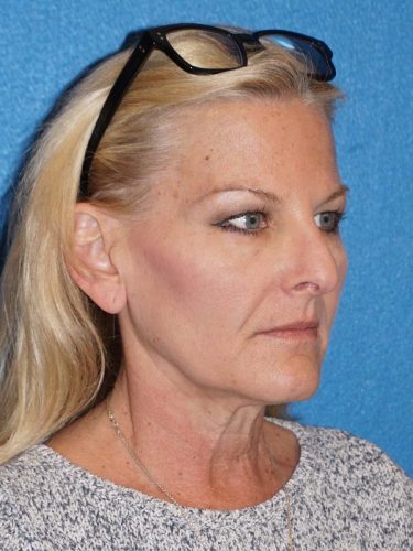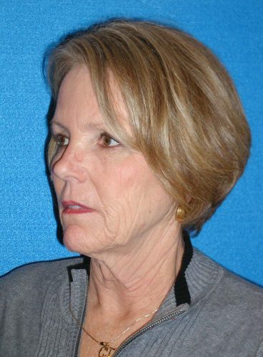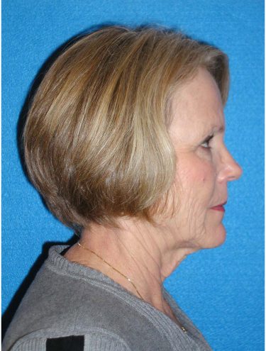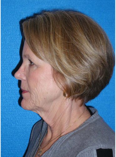 The patient is a 60-year-old female who wanted to get rid of excess skin in her neck and improve the excess jowling. She underwent a rhytidectomy, SMAS, platysmaplasty procedure. At a later time she underwent fat grafting to her cheeks, nasolabial folds, under cheek, and lid/cheek junction area.