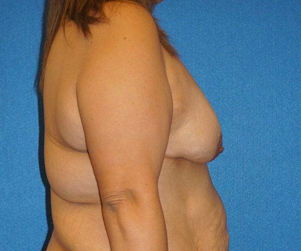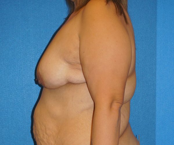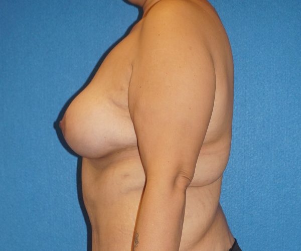 This patient is 26 year old who lost over 100lbs with gastric bypass surgery. She underwent abdominoplasty with liposuction and bilateral mastopexy with augmentation. A 380cc Saline implant was placed on the left and a 480cc Saline implant was placed on the right given her significant asymmetry.