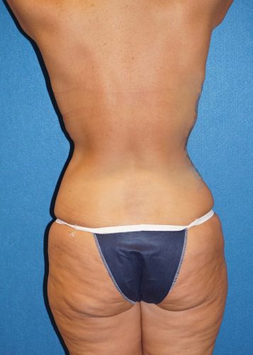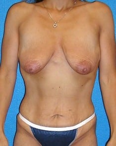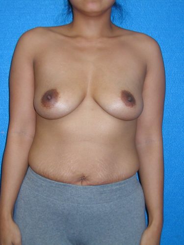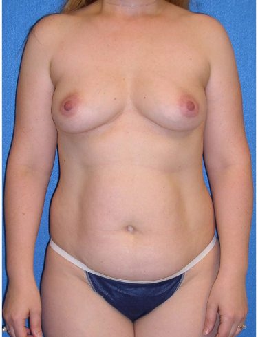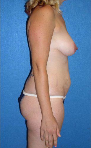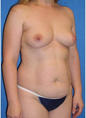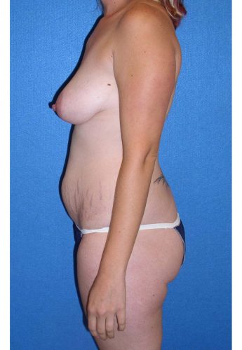 The patient is a 38-year-old who underwent mommy makeover including abdominoplasty with liposuction to her upper and lateral abdomen and flanks and bilateral breast augmentation using 300 cc smooth round moderate plus profile silicone gel implants which were placed submuscularly using inframammary fold incisions.